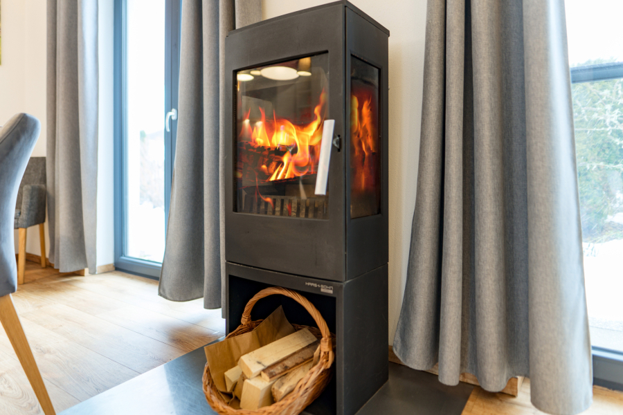- Obývačka s krbom a priestrannou sedačkou,